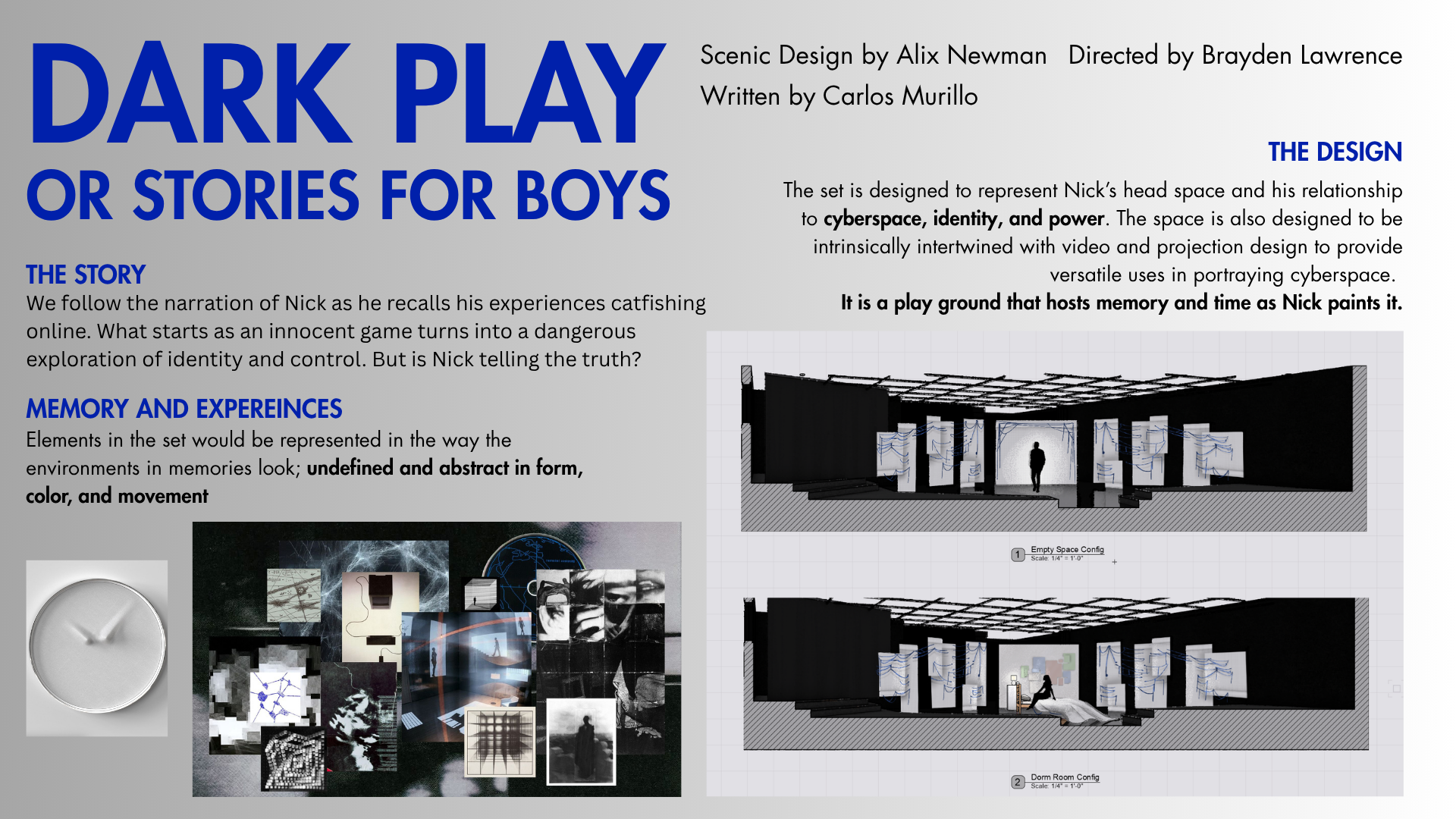 Director: Brayden Lawrence | Asst. Director: Joseph Curry | Stage Manager: Isabella Brewer | Asst. Stage Manager: Jay Zhu | Scenic Designer: Alix Newman | Asst. Scenic Designer: Anousha Baqai | Technical Director: Tahvo Stephan | Asst. Technical Director: Amara Parker | Costume Designer: Briana Newsom | Assist. Costume Designer: Niyati Ramachandran | Graphic/Video Designer: Just Gold | Sound Designer: Landon Schmidt | SFX Make-up Artist: Tali Chase | Landon Black: Photographer